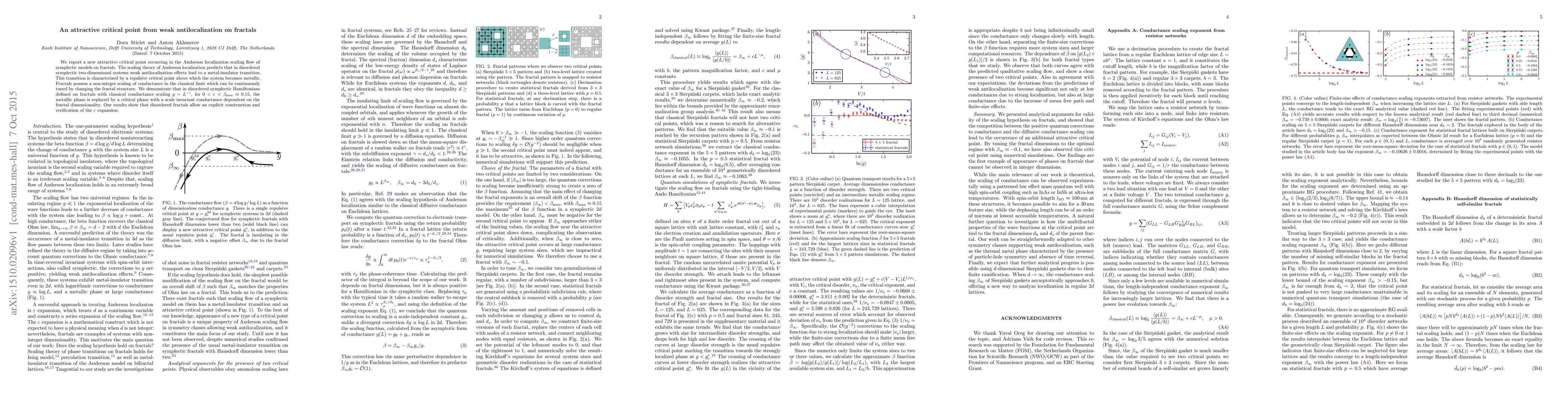 We report a new attractive critical point occurring in the Anderson localization scaling flow of symplectic models on fractals. The scaling theory of Anderson localization predicts that in disordered symplectic two-dimensional systems weak antilocalization effects lead to a metal-insulator transition. This transition is characterized by a repulsive critical point above which the system becomes metallic. Fractals possess a non-integer scaling of conductance in the classical limit which can be continuously tuned by changing the fractal structure. We demonstrate that in disordered symplectic Hamiltonians defined on fractals with classical conductance scaling $g \sim L^{-\varepsilon}$, for $0 < \varepsilon < \beta_\mathrm{max} \approx 0.15$, the metallic phase is replaced by a critical phase with a scale invariant conductance dependent on the fractal dimensionality. Our results show that disordered fractals allow an explicit construction and verification of the $\varepsilon$ expansion.