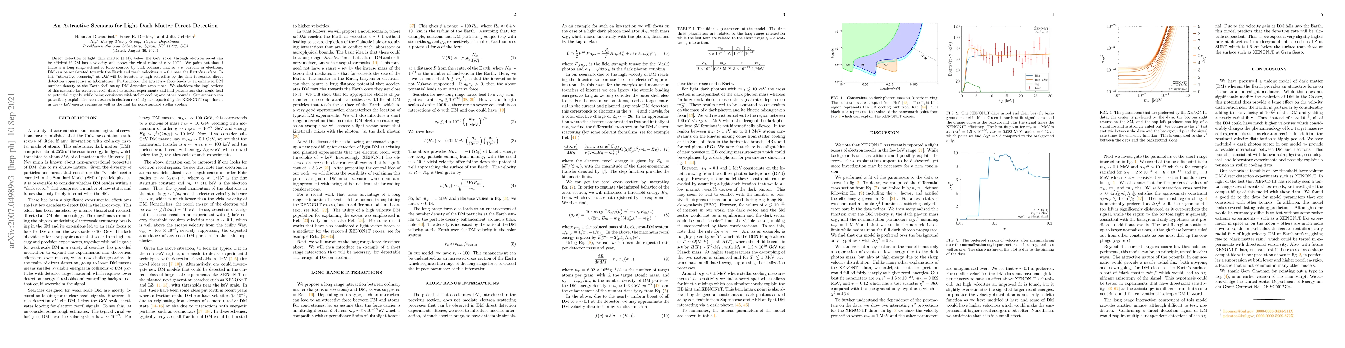 This paper proposes an "attractive scenario" where light dark matter (DM) is accelerated towards Earth by long-range forces, reaching high velocities and densities that enhance direct detection prospects. It suggests this scenario could explain recent excess signals in electron recoil experiments and non-standard stellar cooling.