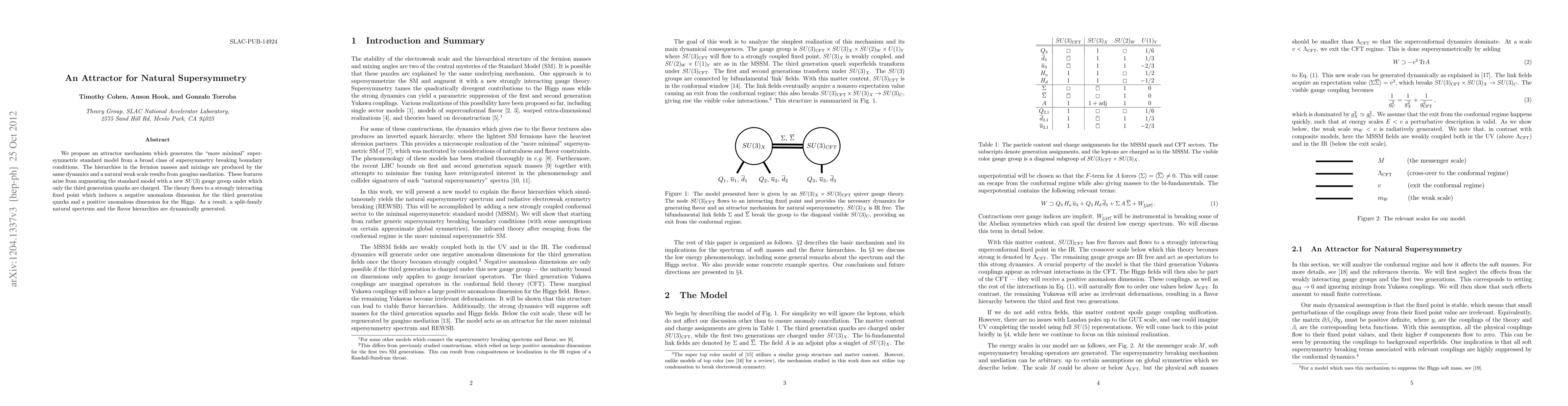 We propose an attractor mechanism which generates the "more minimal" supersymmetric standard model from a broad class of supersymmetry breaking boundary conditions. The hierarchies in the fermion masses and mixings are produced by the same dynamics and a natural weak scale results from gaugino mediation. These features arise from augmenting the standard model with a new SU(3) gauge group under which only the third generation quarks are charged. The theory flows to a strongly interacting fixed point which induces a negative anomalous dimension for the third generation quarks and a positive anomalous dimension for the Higgs. As a result, a split-family natural spectrum and the flavor hierarchies are dynamically generated.