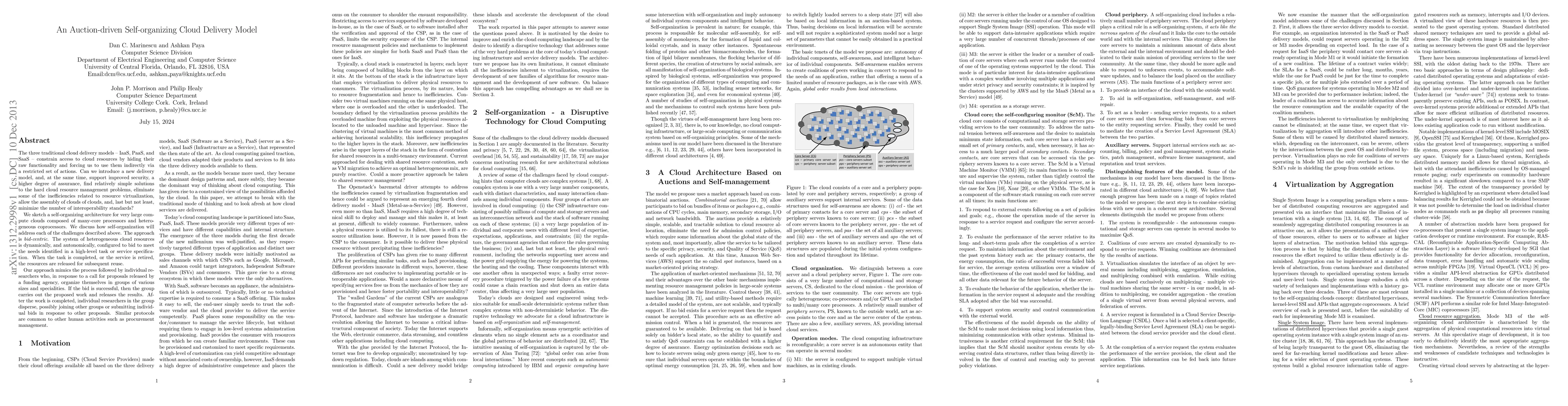 The three traditional cloud delivery models -- IaaS, PaaS, and SaaS -- constrain access to cloud resources by hiding their raw functionality and forcing us to use them indirectly via a restricted set of actions. Can we introduce a new delivery model, and, at the same time, support improved security, a higher degree of assurance, find relatively simple solutions to the hard cloud resource management problems, eliminate some of the inefficiencies related to resource virtualization, allow the assembly of clouds of clouds, and, last but not least, minimize the number of interoperability standards? We sketch a self-organizing architecture for very large compute clouds composed of many-core processors and heterogeneous coprocessors. We discuss how self-organization will address each of the challenges described above. The approach is {\em bid-centric}. The system of heterogeneous cloud resources is dynamically, and autonomically, configured to bid to meet the needs identified in a high-level task or service specification. When the task is completed, or the service is retired, the resources are released for subsequent reuse. Our approach mimics the process followed by individual researchers who, in response to a call for proposals released by a funding agency, organize themselves in groups of various sizes and specialities. If the bid is successful, then the group carries out the proposed work and releases the results. After the work is completed, individual researchers in the group disperse, possibly joining other groups or submitting individual bids in response to other proposals. Similar protocols are common to other human activities such as procurement management.