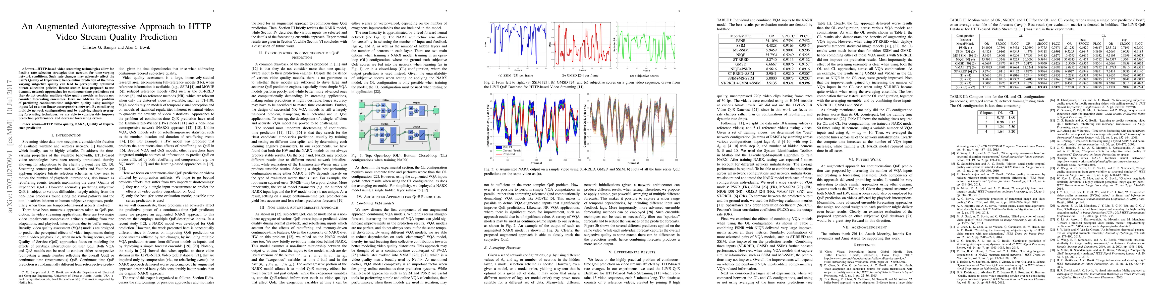 This paper proposes an augmented autoregressive model for predicting the subjective quality of HTTP video streams in real-time, incorporating multiple quality models and ensemble forecasting to improve prediction accuracy and reduce errors. The approach leverages dynamic network conditions and multiple input configurations for optimized bitrate allocation.