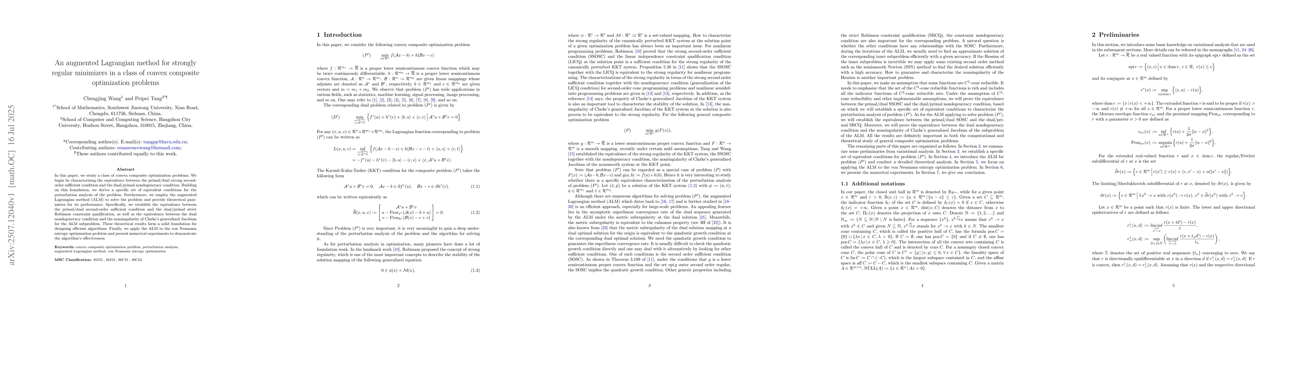 In this paper, we study a class of convex composite optimization problems. We begin by characterizing the equivalence between the primal/dual strong second-order sufficient condition and the dual/primal nondegeneracy condition. Building on this foundation, we derive a specific set of equivalent conditions for the perturbation analysis of the problem. Furthermore, we employ the augmented Lagrangian method (ALM) to solve the problem and provide theoretical guarantees for its performance. Specifically, we establish the equivalence between the primal/dual second-order sufficient condition and the dual/primal strict Robinson constraint qualification, as well as the equivalence between the dual nondegeneracy condition and the nonsingularity of Clarke's generalized Jacobian for the ALM subproblem. These theoretical results form a solid foundation for designing efficient algorithms. Finally, we apply the ALM to the von Neumann entropy optimization problem and present numerical experiments to demonstrate the algorithm's effectiveness.