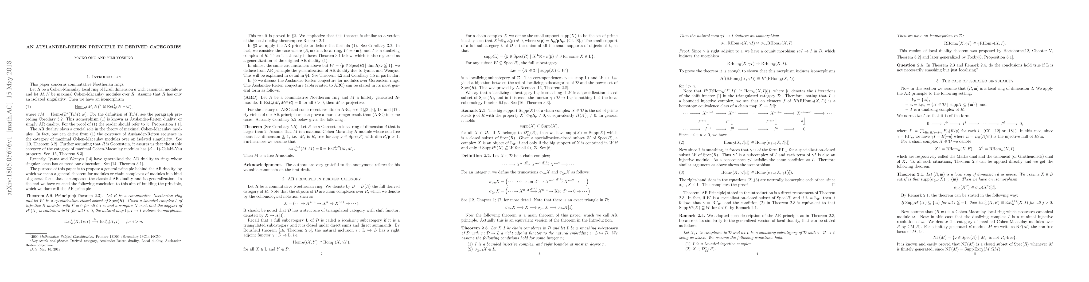 Summary: This paper introduces a principle in derived categories underlying Auslander-Reiten duality, applying it to validate the Auslander-Reiten conjecture for Gorenstein rings of dimension greater than two with singular loci of at most one dimension.