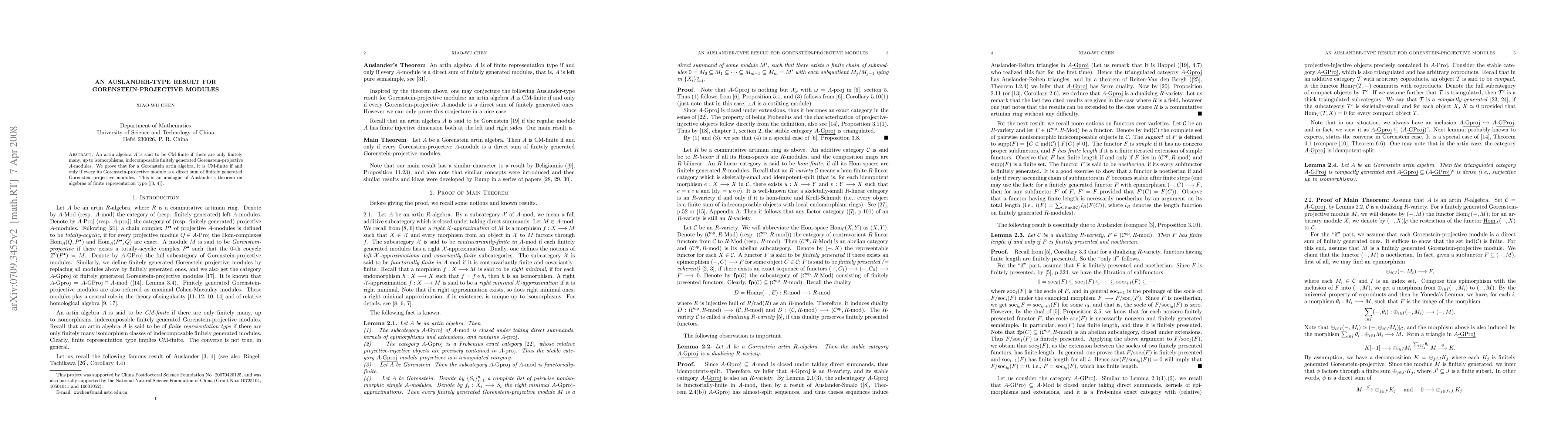 This paper establishes an Auslander-type result for Gorenstein artin algebras, proving they are CM-finite if and only if every Gorenstein-projective module is a direct sum of finitely generated Gorenstein-projective modules, analogous to Auslander's theorem on finite representation type.