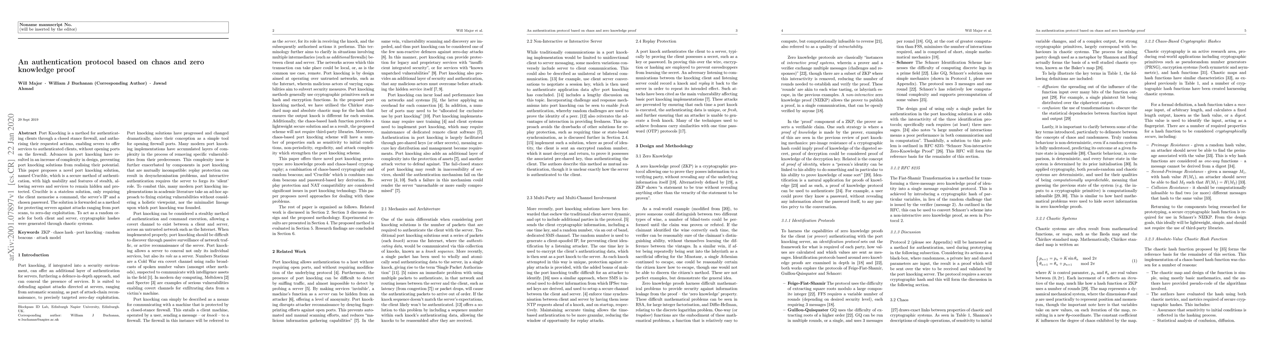 A novel port knocking solution called Crucible proposes a secure method of authentication with high usability and stealth protection for servers, using chaotic systems and zero knowledge proof.