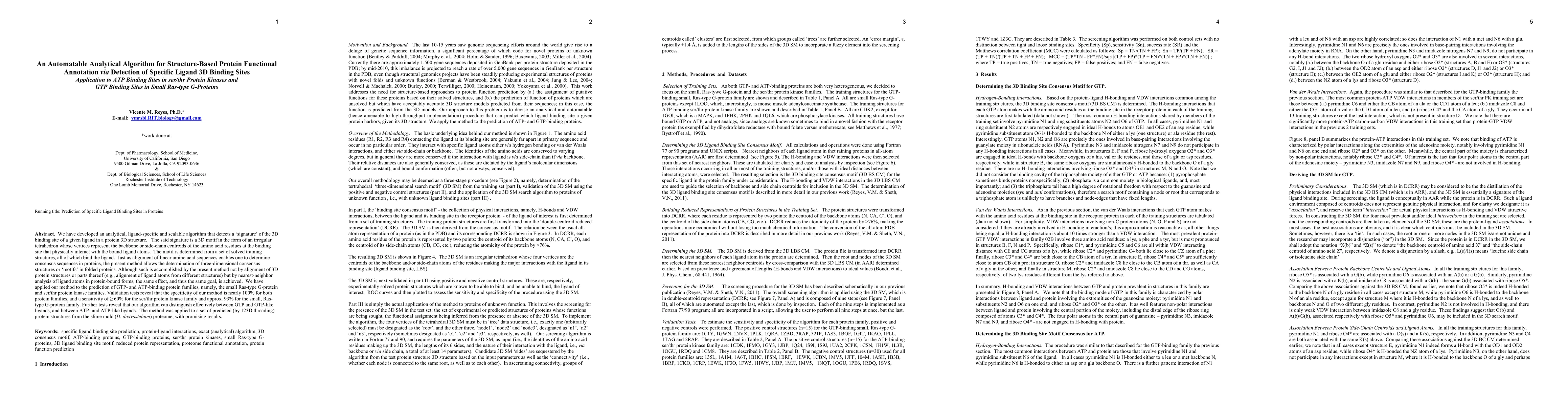 This paper presents an automatable algorithm for detecting 3D binding sites of specific ligands in protein structures, achieving nearly 100% specificity for ATP and GTP binding sites in protein kinases and small G-proteins. The algorithm identifies a 3D motif formed by ligand-interacting amino acid residues, validated with high sensitivity for kinases and G-proteins.