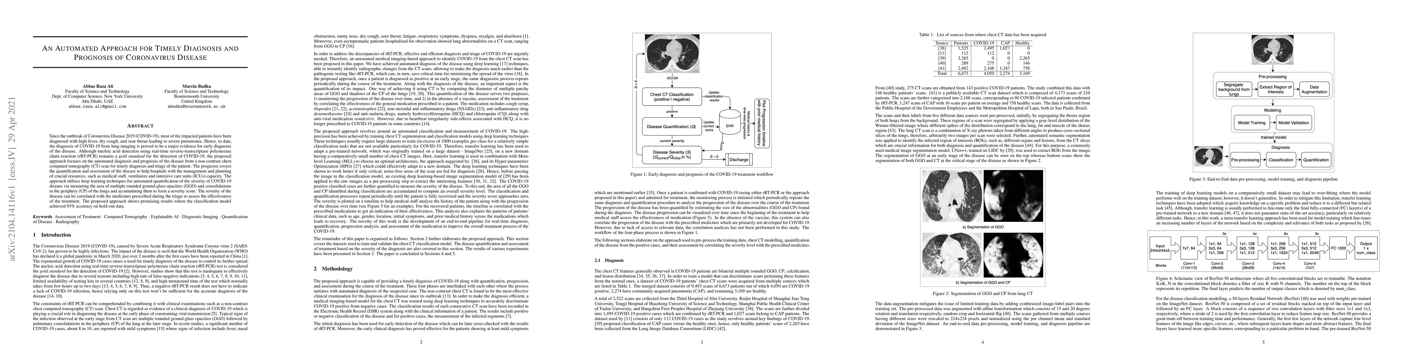 This paper proposes an automated deep learning approach for timely diagnosis and prognosis of COVID-19 using non-contrast chest CT scans. The method quantifies disease severity by measuring lung abnormalities, aiding in hospital resource management and treatment assessment, with a classification model achieving 93% accuracy.