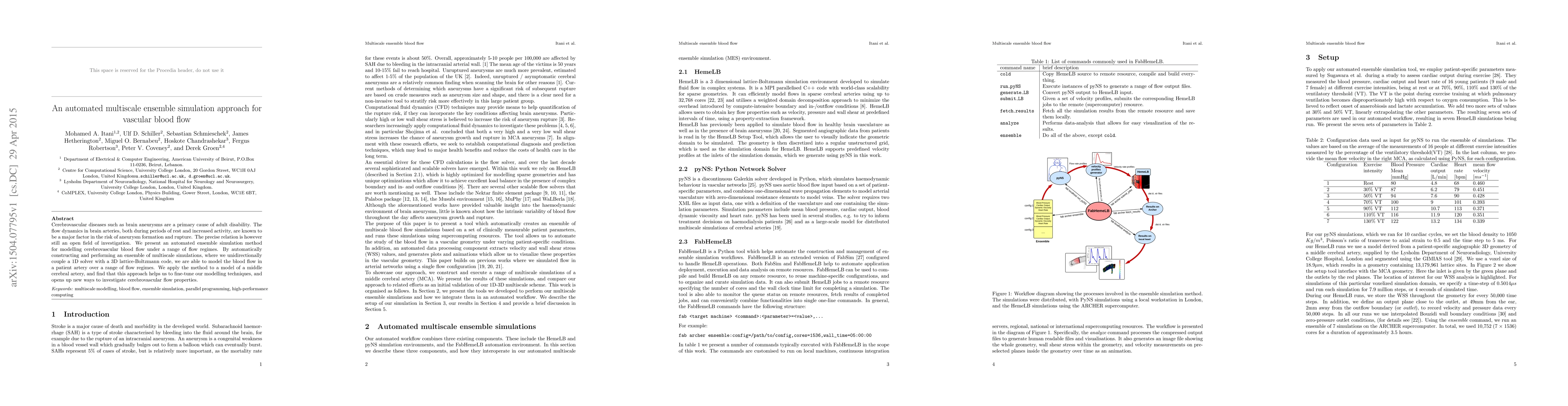 This paper presents an automated multiscale ensemble simulation method to model cerebrovascular blood flow dynamics, coupling a 1D solver with a 3D lattice-Boltzmann code. The approach aids in investigating the risk factors for aneurysm formation and rupture by simulating blood flow in a patient artery across various flow regimes.