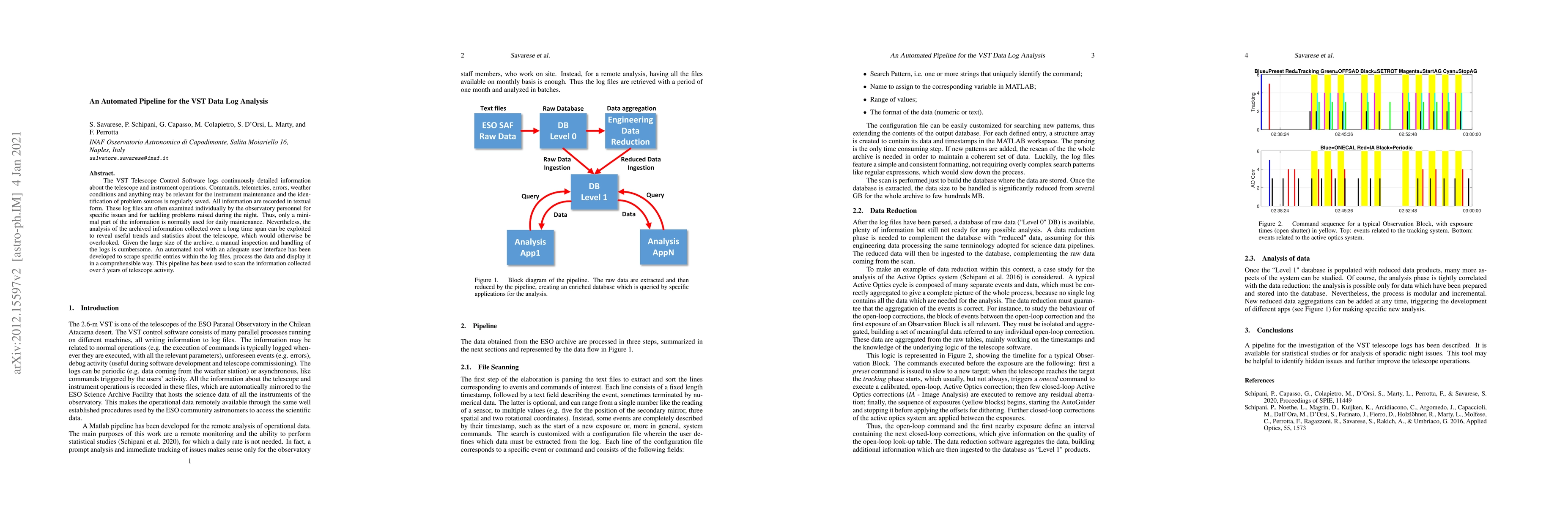 The VST Telescope Control Software logs continuously detailed information about the telescope and instrument operations. Commands, telemetries, errors, weather conditions and anything may be relevant for the instrument maintenance and the identification of problem sources is regularly saved. All information are recorded in textual form. These log files are often examined individually by the observatory personnel for specific issues and for tackling problems raised during the night. Thus, only a minimal part of the information is normally used for daily maintenance. Nevertheless, the analysis of the archived information collected over a long time span can be exploited to reveal useful trends and statistics about the telescope, which would otherwise be overlooked. Given the large size of the archive, a manual inspection and handling of the logs is cumbersome. An automated tool with an adequate user interface has been developed to scrape specific entries within the log files, process the data and display it in a comprehensible way. This pipeline has been used to scan the information collected over 5 years of telescope activity.