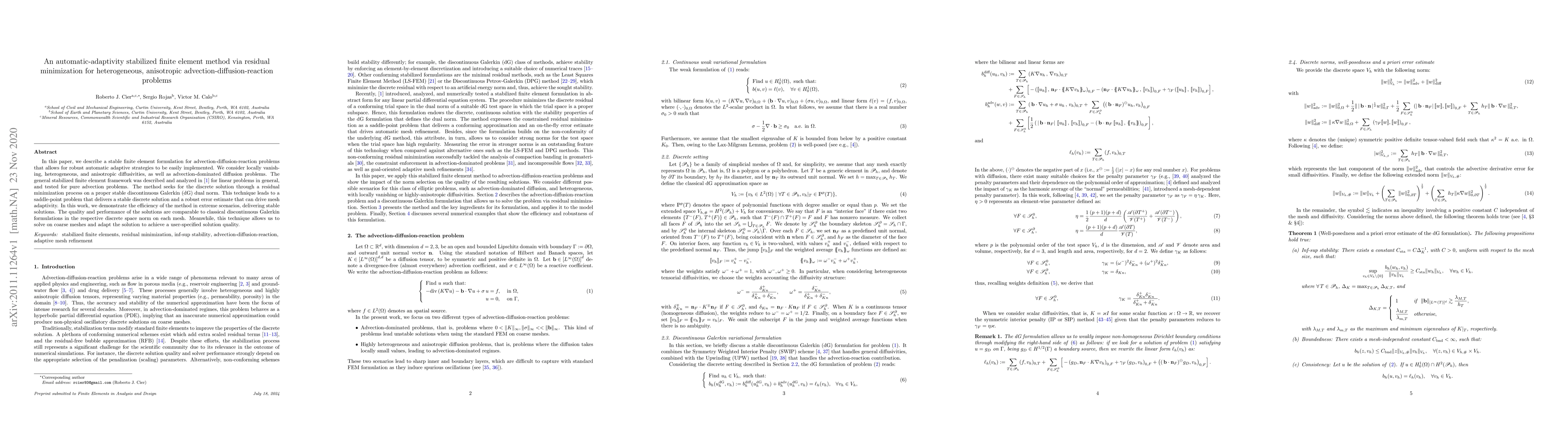 This paper presents a stable finite element method for advection-diffusion-reaction problems, utilizing residual minimization and adaptive strategies for heterogeneous, anisotropic conditions. The method achieves stable solutions and robust error estimates, enabling efficient mesh adaptation to meet specified solution quality.