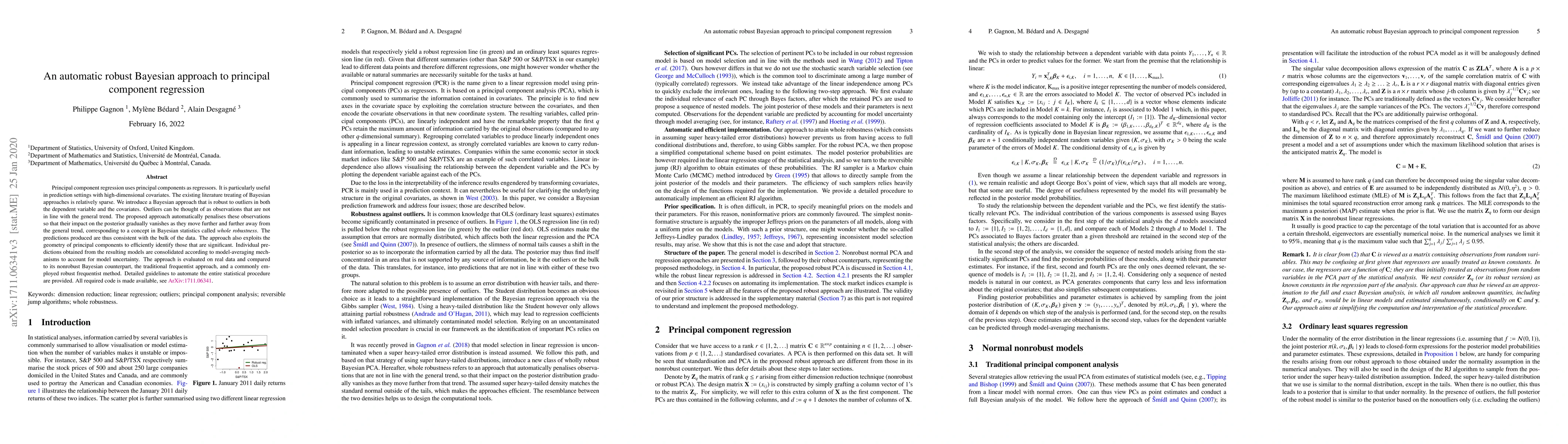 This paper proposes an automatic robust Bayesian method for principal component regression, which effectively handles outliers by gradually reducing their influence, ensuring predictions align with the majority of the data. The approach leverages model averaging to account for uncertainty and is evaluated against traditional methods, with all code made publicly available.