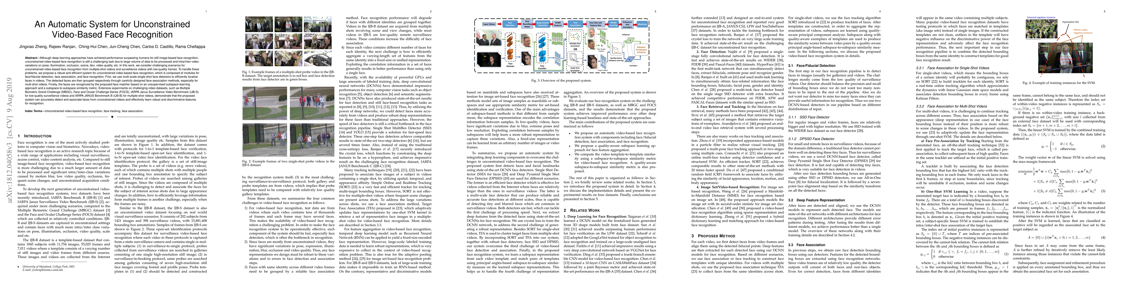 This paper proposes an automatic system for unconstrained video-based face recognition, addressing challenges like pose, illumination, and occlusion variations. The system includes face detection, association, and recognition modules, demonstrating effective performance on various challenging video datasets.