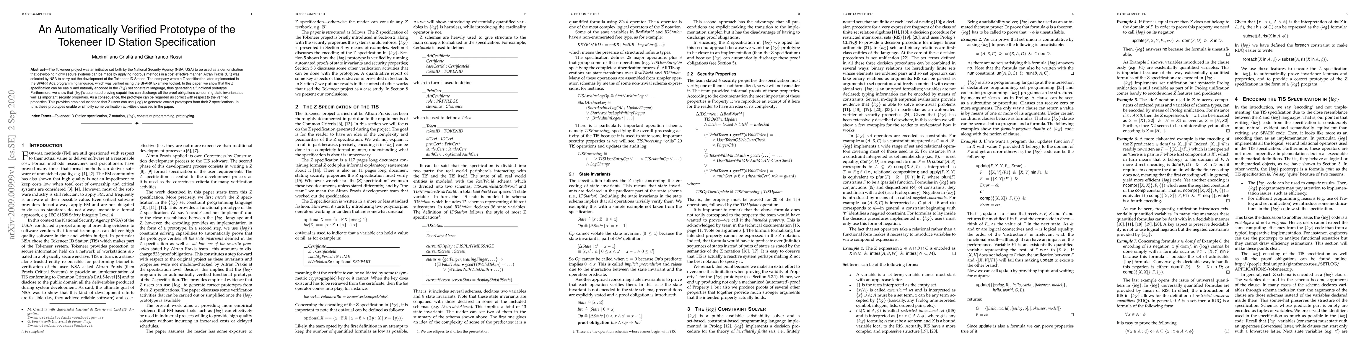 This paper demonstrates the development of a verified prototype of the Tokeneer ID Station using the {log} set constraint language, showing that it can encode a Z specification and discharge all proof obligations, thus providing a correct prototype and empirical evidence for simplifying verification activities.