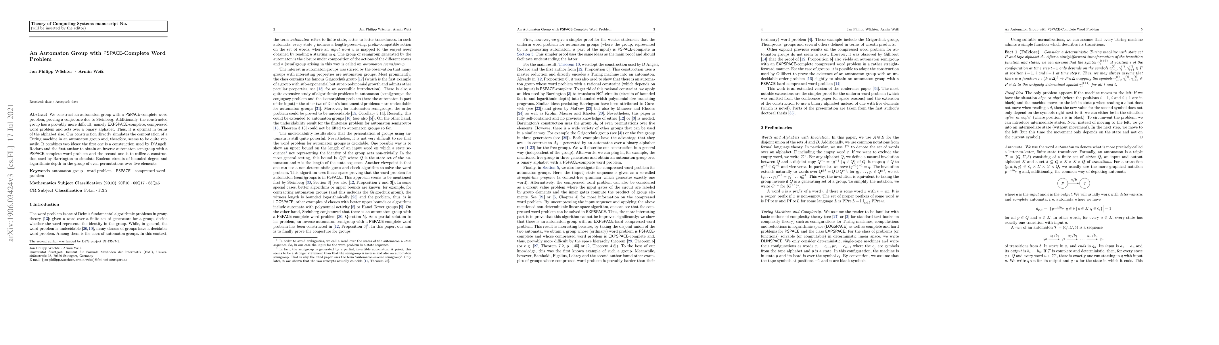 Researchers construct an automaton group with a PSPACE-complete word problem, demonstrating a conjecture due to Steinberg while also achieving EXPSPACE-completeness over a binary alphabet.