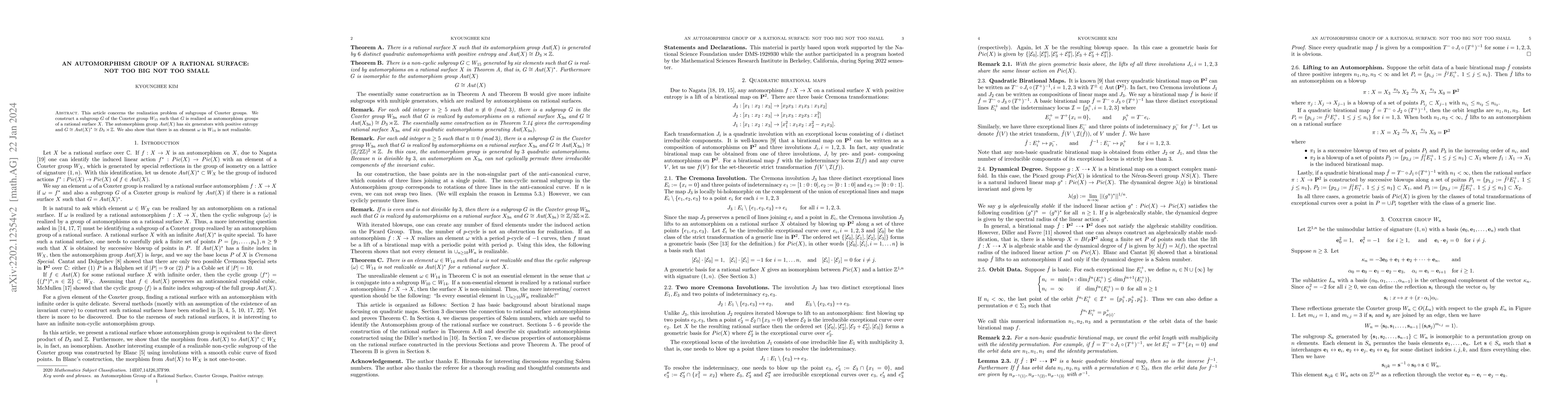 This paper constructs a subgroup $G \cong D_3 \times \mathbb{Z}$ of the Coxeter group $W_{15}$ that acts as the automorphism group of a rational surface $X$. It also demonstrates that certain elements in $W_{14}$ cannot be realized in this context.