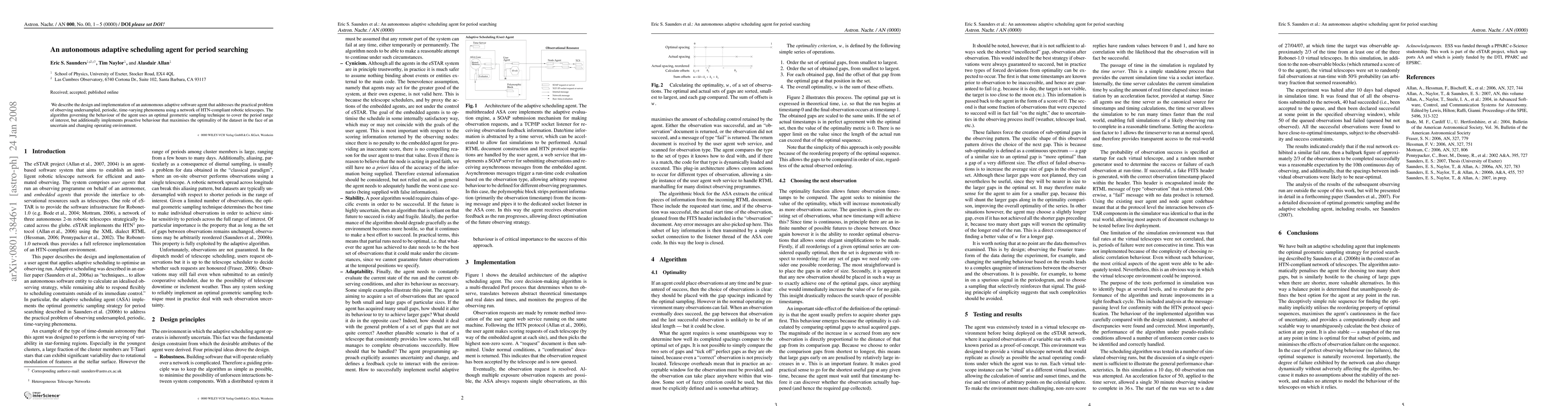 This research paper introduces an autonomous adaptive scheduling agent that optimizes sampling of periodic phenomena using robotic telescopes in a changing environment. The agent uses optimal geometric sampling and proactive behavior to maximize dataset optimality.