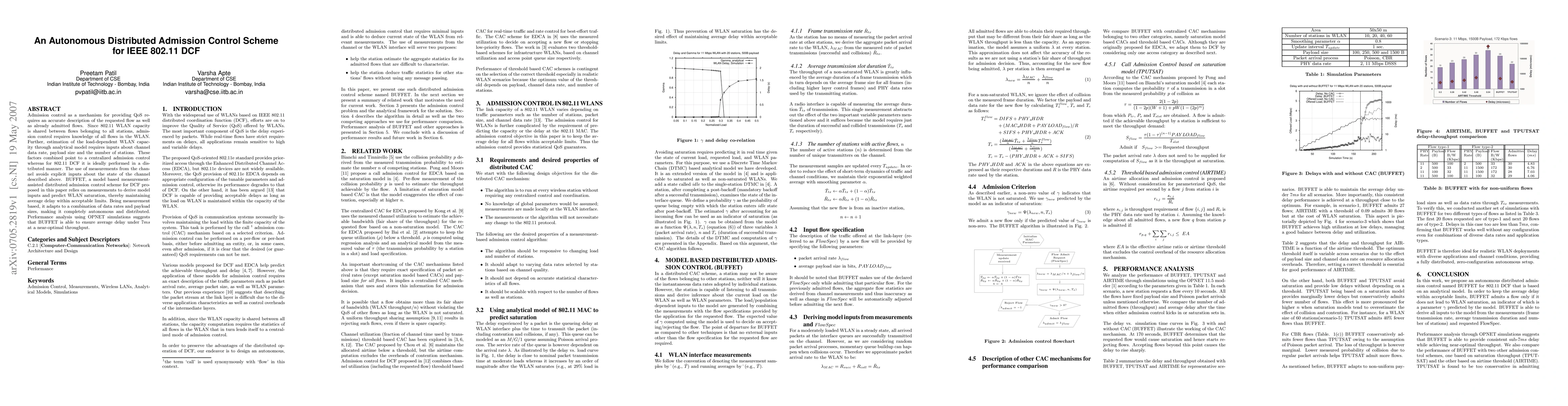 A new distributed admission control scheme for IEEE 802.11 DCF networks is proposed, using measurements to predict WLAN saturation and ensure average delay under 7ms at near-optimal throughput.
