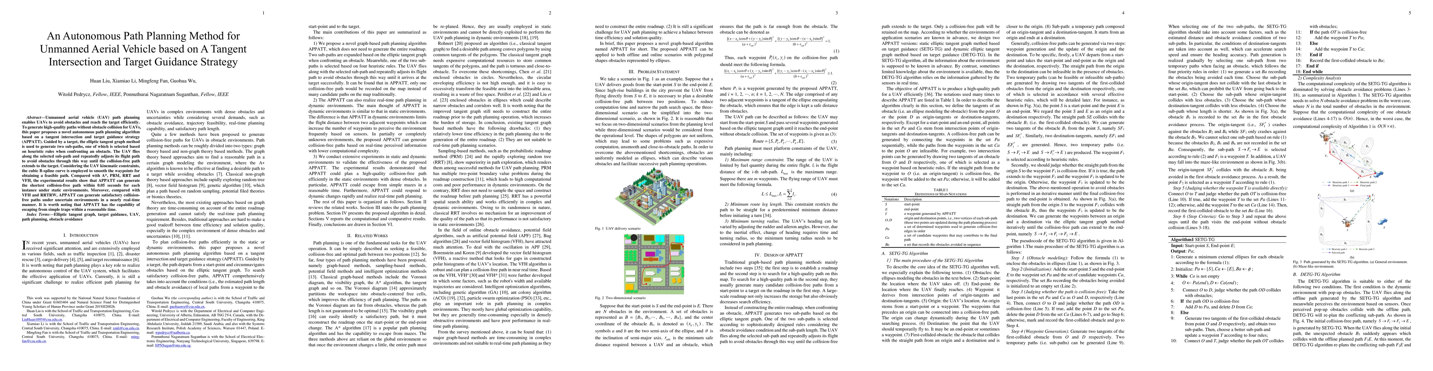 This paper introduces a novel autonomous path planning algorithm (APPATT) for UAVs that uses a tangent intersection and target guidance strategy to efficiently navigate around obstacles while reaching the target. APPATT employs an elliptic tangent graph method and cubic B-spline curve smoothing, demonstrating superior performance in generating the shortest and most efficient collision-free paths compared to other algorithms.