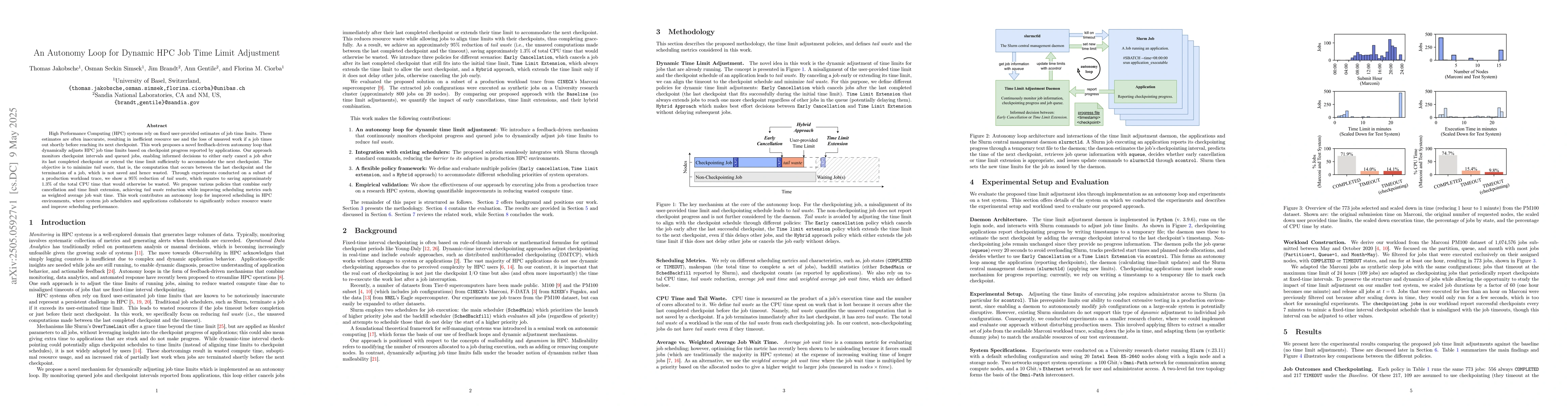 A novel feedback-driven autonomy loop for dynamic HPC job time limit adjustment based on checkpoint progress reports.