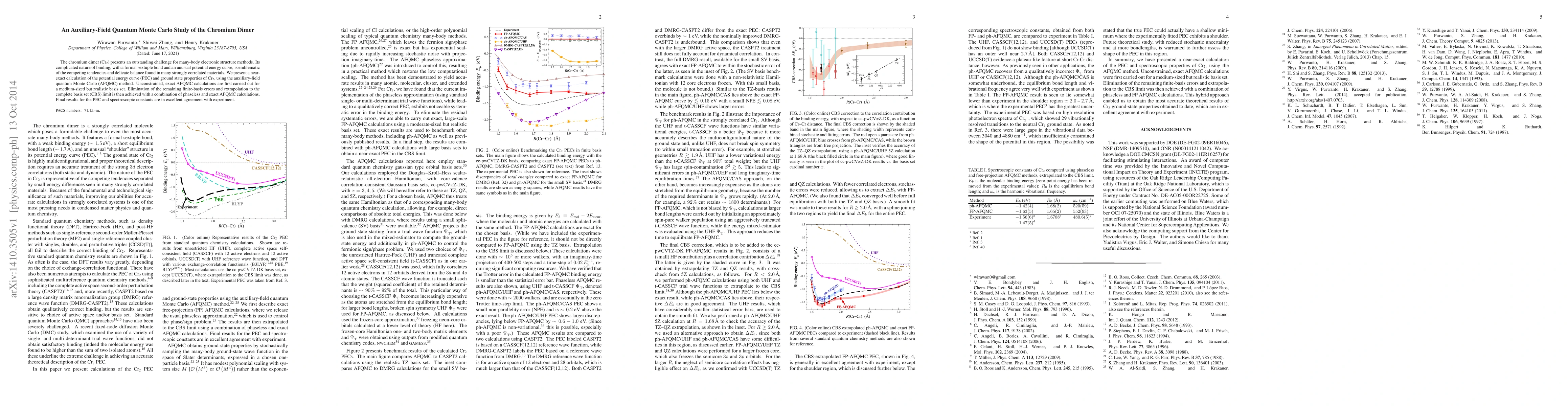 This study employs auxiliary-field quantum Monte Carlo (AFQMC) to determine the potential energy curve and ground state properties of the chromium dimer (Cr2). The AFQMC method achieves near-exact results, with final calculations agreeing well with experimental data, highlighting its efficacy for strongly correlated materials.
