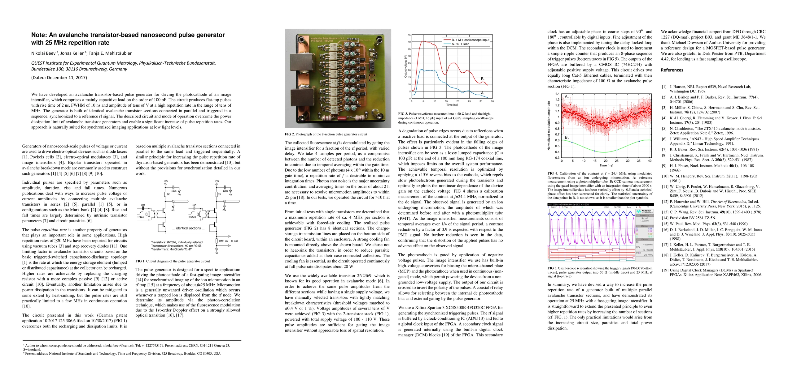 We have developed an avalanche transistor-based pulse generator for driving the photocathode of an image intensifier, which comprises a mainly capacitive load on the order of 100 pF. The circuit produces flat-top pulses with rise time of 2 ns, FWHM of 10 ns and amplitude of tens of V at a high repetition rate in the range of tens of MHz. The generator is built of identical avalanche transistor sections connected in parallel and triggered in a sequence, synchronized to a reference rf signal. The described circuit and mode of operation overcome the power dissipation limit of avalanche transistor generators and enable a significant increase of pulse repetition rates. Our approach is naturally suited for synchronized imaging applications at low light levels.