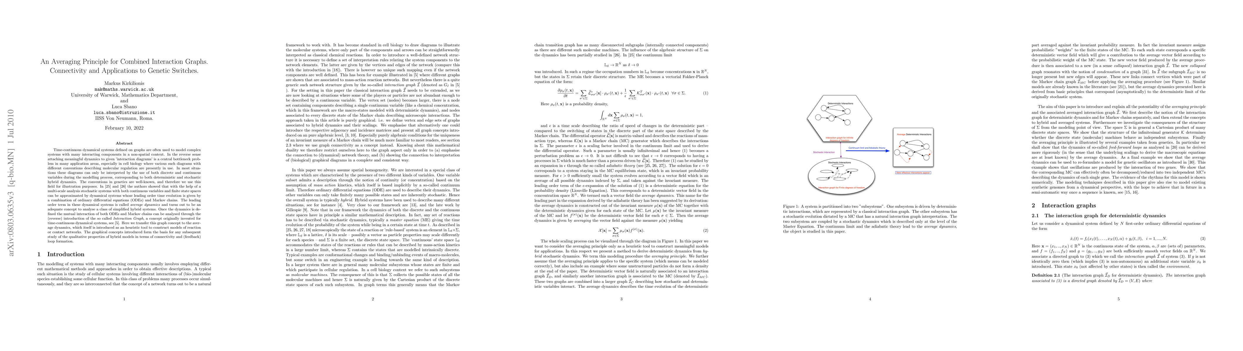 Time-continuous dynamical systems defined on graphs are often used to model complex systems with many interacting components in a non-spatial context. In the reverse sense attaching meaningful dynamics to given 'interaction diagrams' is a central bottleneck problem in many application areas, especially in cell biology where various such diagrams with different conventions describing molecular regulation are presently in use. In most situations these diagrams can only be interpreted by the use of both discrete and continuous variables during the modelling process, corresponding to both deterministic and stochastic hybrid dynamics. The conventions in genetics are well-known, and therefore we use this field for illustration purposes. In [25] and [26] the authors showed that with the help of a multi-scale analysis stochastic systems with both continuous variables and finite state spaces can be approximated by dynamical systems whose leading order time evolution is given by a combination of ordinary differential equations (ODEs) and Markov chains. The leading order term in these dynamical systems is called average dynamics and turns out to be an adequate concept to analyse a class of simplified hybrid systems. Once the dynamics is defifined the mutual interaction of both ODEs and Markov chains can be analysed through the (reverse) introduction of the so called Interaction Graph, a concept originally invented for time-continuous dynamical systems, see [5]. Here we transfer this graph concept to the average dynamics, which itself is introduced as an heuristic tool to construct models of reaction or contact networks. The graphical concepts introduced form the basis for any subsequent study of the qualitative properties of hybrid models in terms of connectivity and (feedback) loop formation.