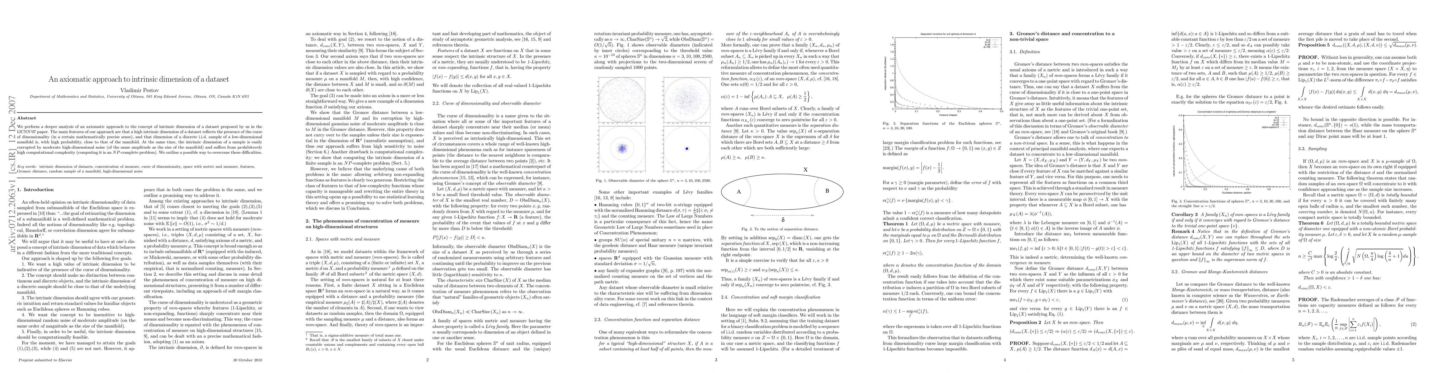 This paper revisits an axiomatic approach to determining the intrinsic dimension of datasets, emphasizing its reflection of the curse of dimensionality and the probabilistic closeness to the manifold's dimension in samples. It also addresses the challenges of noise and computational complexity, proposing potential solutions.