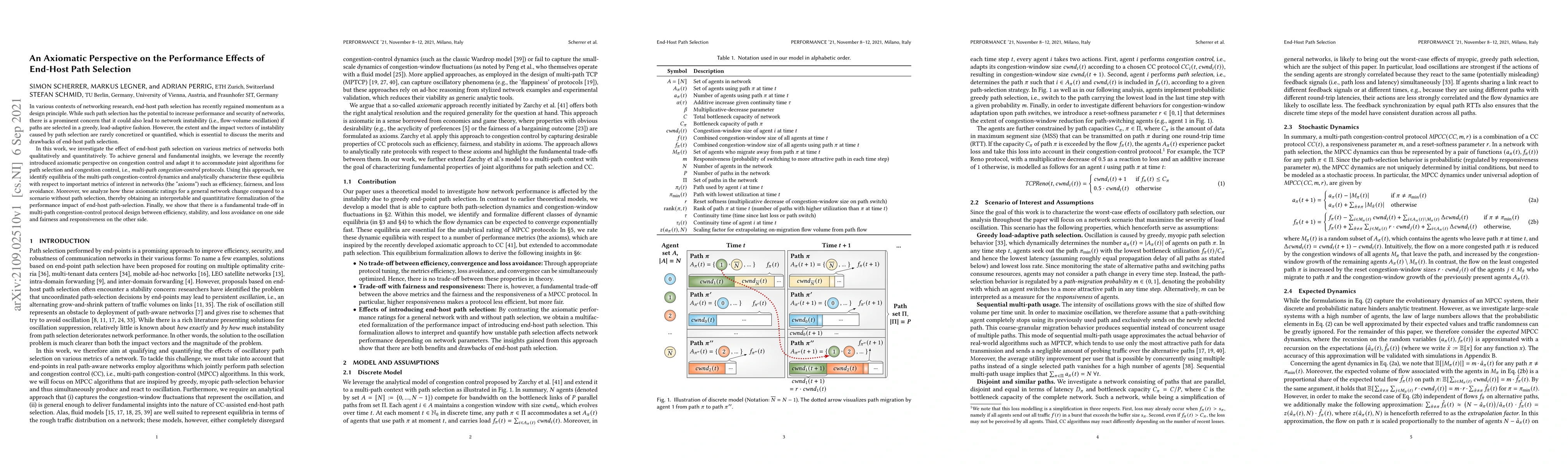 In various contexts of networking research, end-host path selection has recently regained momentum as a design principle. While such path selection has the potential to increase performance and security of networks, there is a prominent concern that it could also lead to network instability (i.e., flow-volume oscillation) if paths are selected in a greedy, load-adaptive fashion. However, the extent and the impact vectors of instability caused by path selection are rarely concretized or quantified, which is essential to discuss the merits and drawbacks of end-host path selection. In this work, we investigate the effect of end-host path selection on various metrics of networks both qualitatively and quantitatively. To achieve general and fundamental insights, we leverage the recently introduced axiomatic perspective on congestion control and adapt it to accommodate joint algorithms for path selection and congestion control, i.e., multi-path congestion-control protocols. Using this approach, we identify equilibria of the multi-path congestion-control dynamics and analytically characterize these equilibria with respect to important metrics of interest in networks (the 'axioms') such as efficiency, fairness, and loss avoidance. Moreover, we analyze how these axiomatic ratings for a general network change compared to a scenario without path selection, thereby obtaining an interpretable and quantititative formalization of the performance impact of end-host path-selection. Finally, we show that there is a fundamental trade-off in multi-path congestion-control protocol design between efficiency, stability, and loss avoidance on one side and fairness and responsiveness on the other side.
