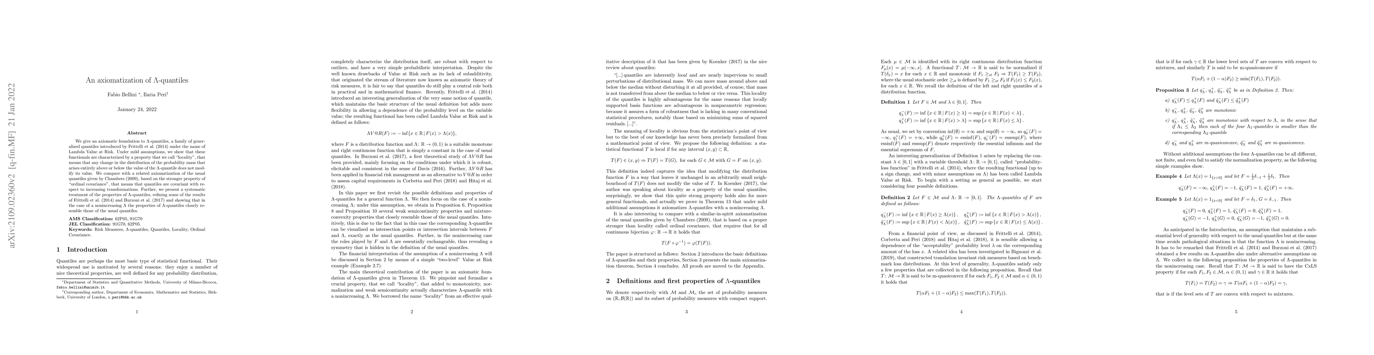 This paper axiomatizes $\Lambda$-quantiles, generalizing quantiles introduced by Frittelli et al. (2014), and demonstrates their "locality" property, contrasting with Chambers' (2009) "ordinal covariance" for quantiles. It refines prior results and shows $\Lambda$-quantiles' resemblance to usual quantiles when $\Lambda$ is nonincreasing.