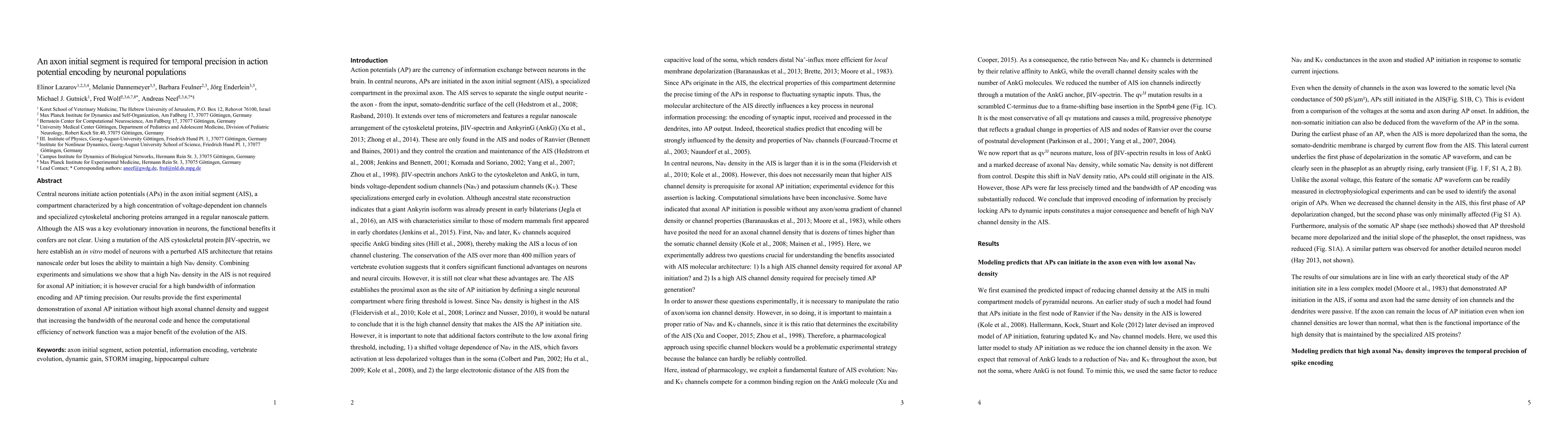 This study demonstrates that while a high density of voltage-dependent sodium channels in the axon initial segment is not essential for action potential initiation, it is crucial for temporal precision and high-bandwidth information encoding in neuronal populations. The findings suggest that the evolution of the AIS primarily enhanced computational efficiency through improved temporal precision.