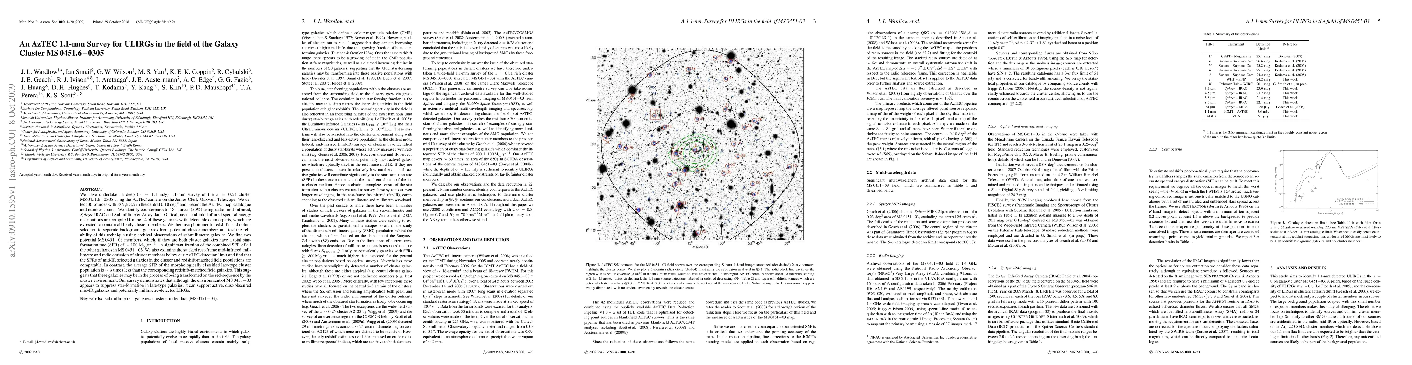 This study conducted a deep 1.1-mm survey of the MS 0451.6-0305 galaxy cluster using the AzTEC camera, detecting 36 sources and identifying 18 counterparts. The survey finds two potential cluster members with high star-formation rates, indicating that while the cluster environment suppresses star-formation in late-type galaxies, it supports active, dust-obscured mid-IR galaxies.