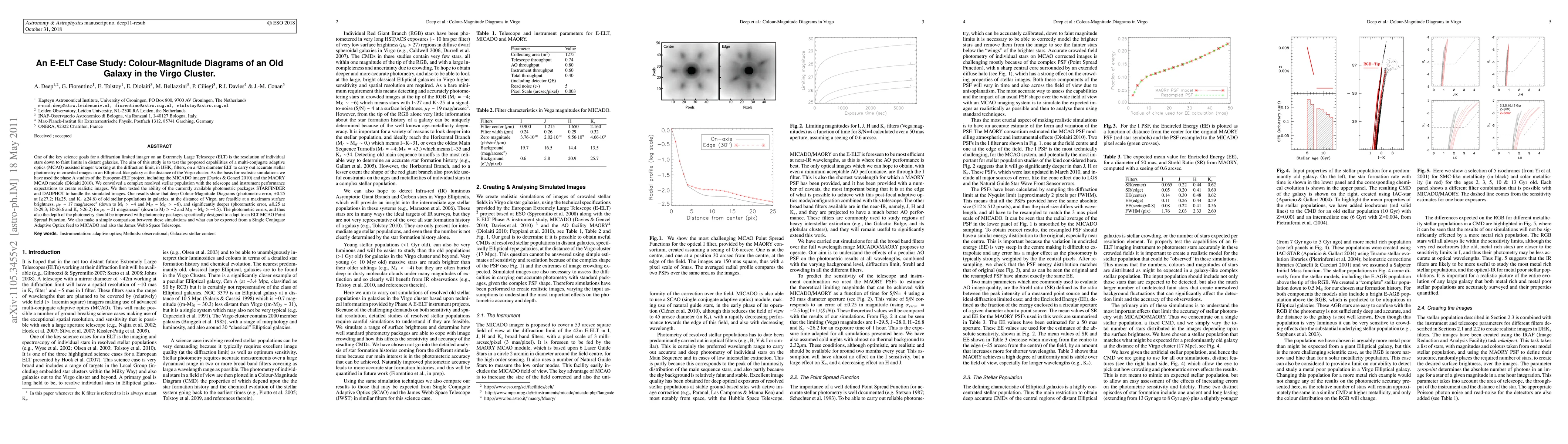 One of the key science goals for a diffraction limited imager on an Extremely Large Telescope (ELT) is the resolution of individual stars down to faint limits in distant galaxies. The aim of this study is to test the proposed capabilities of a multi-conjugate adaptive optics (MCAO) assisted imager working at the diffraction limit, in IJHK$_s$ filters, on a 42m diameter ELT to carry out accurate stellar photometry in crowded images in an Elliptical-like galaxy at the distance of the Virgo cluster. As the basis for realistic simulations we have used the phase A studies of the European-ELT project, including the MICADO imager (Davies & Genzel 2010) and the MAORY MCAO module (Diolaiti 2010). We convolved a complex resolved stellar population with the telescope and instrument performance expectations to create realistic images. We then tested the ability of the currently available photometric packages STARFINDER and DAOPHOT to handle the simulated images. Our results show that deep Colour-Magnitude Diagrams (photometric error, $\pm$0.25 at I$\ge$27.2; H$\ge$25. and K$_s\ge$24.6) of old stellar populations in galaxies, at the distance of Virgo, are feasible at a maximum surface brightness, $\mu_V \sim$ 17 mag/arcsec$^2$ (down to M$_I > -4$ and M$_H \sim$ M$_K > -6$), and significantly deeper (photometric error, $\pm$0.25 at I$\ge$29.3; H$\ge$26.6 and K$_s\ge$26.2) for $\mu_V \sim$ 21 mag/arcsec$^2$ (down to M$_I \ge -2$ and M$_H \sim$ M$_K \ge -4.5$). The photometric errors, and thus also the depth of the photometry should be improved with photometry packages specifically designed to adapt to an ELT MCAO Point Spread Function. We also make a simple comparison between these simulations and what can be expected from a Single Conjugate Adaptive Optics feed to MICADO and also the James Webb Space Telescope.