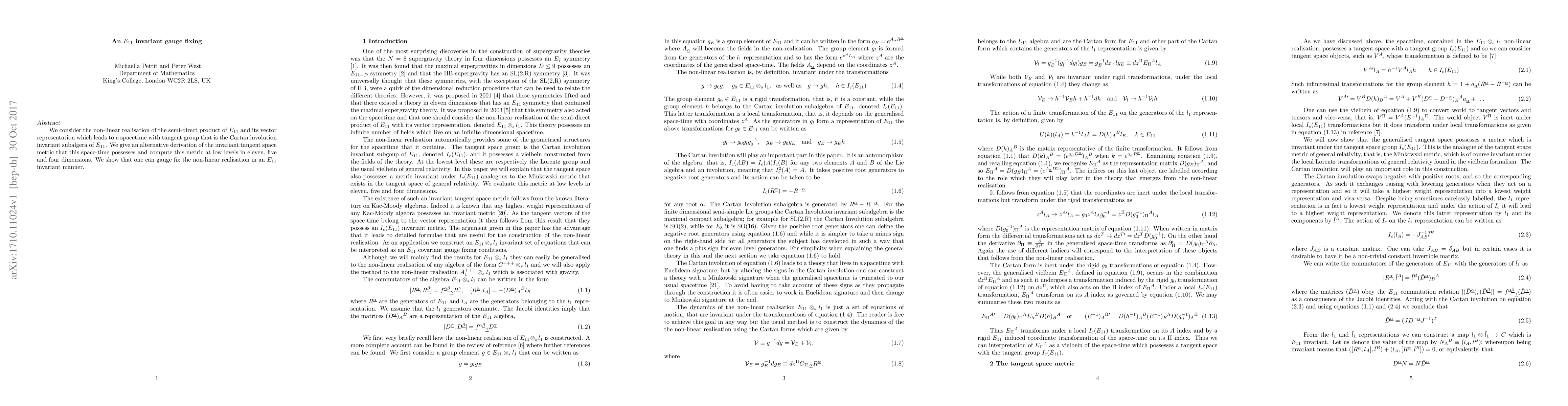 We consider the non-linear realisation of the semi-direct product of E11 and its vector representation which leads to a spacetime with tangent group that is the Cartan involution invariant subalgera of E11. We give an alternative derivation of the invariant tangent space metric that this space-time possesses and compute this metric at low levels in eleven, five and four dimensions. We show that one can gauge fix the non-linear realisation in an E11 invariant manner.