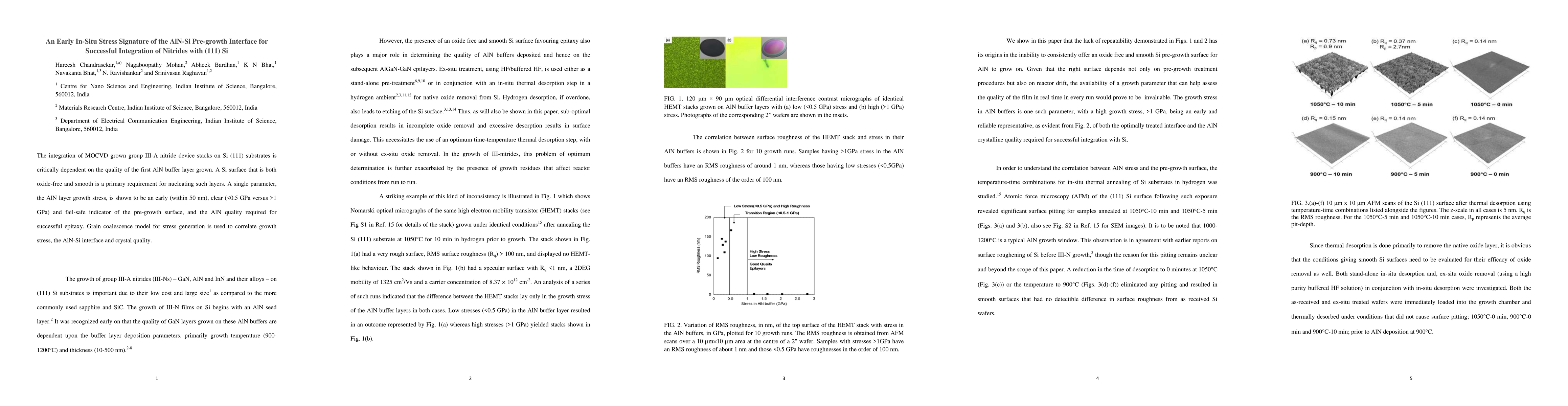 This paper investigates the early stress signature in the AlN layer during the growth process for successful integration of nitrides on Si (111) substrates. The study finds that the AlN layer's growth stress is a reliable indicator of the pre-growth surface quality and the subsequent AlN layer quality, crucial for epitaxial growth.