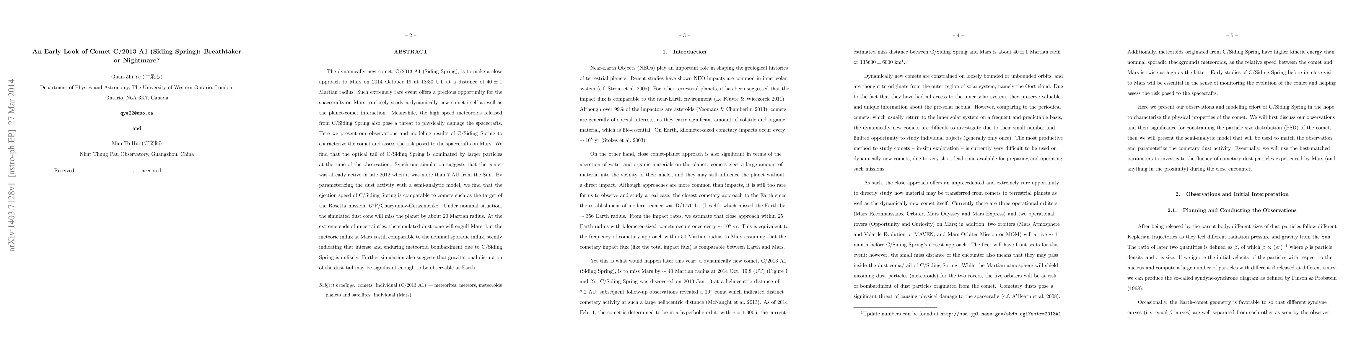A spacecraft on Mars will study a rare comet passing close to the planet, while its high-speed meteoroids pose a threat to the craft. Simulations suggest the comet's dust cone may engulf Mars, but intense bombardment is unlikely.