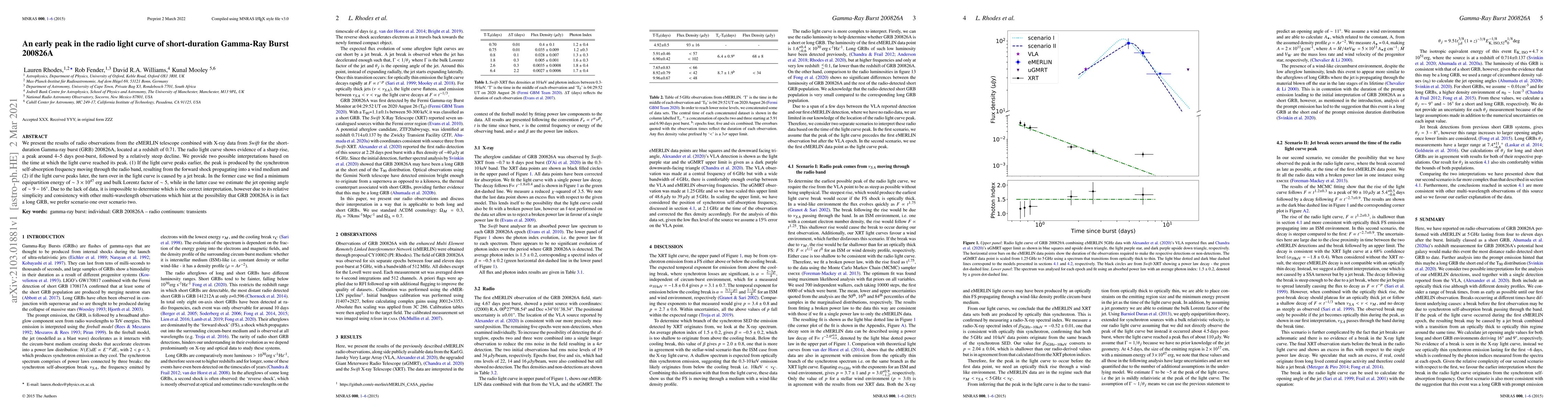 Researchers observed a short-duration Gamma-Ray Burst (GRB) 200826A and found its radio light curve showed a sharp rise, peak around 4-5 days post-burst, followed by a steep decline, with two possible interpretations for the peak timing.