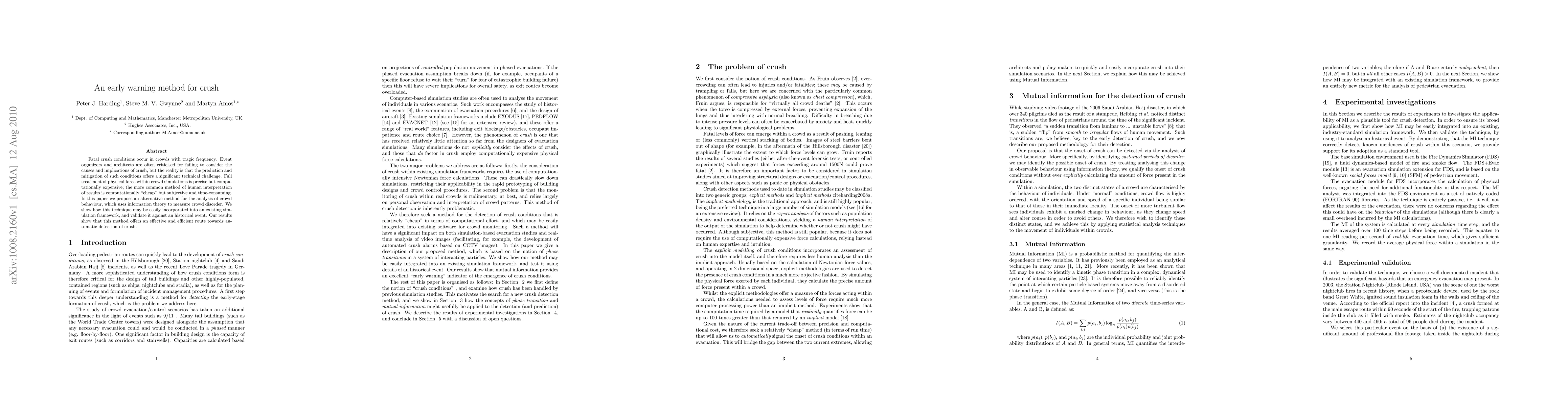 The technique has been validated against an historical event and shows promise as a tool to improve crowd safety and reduce tragic frequency of fatal crush conditions.