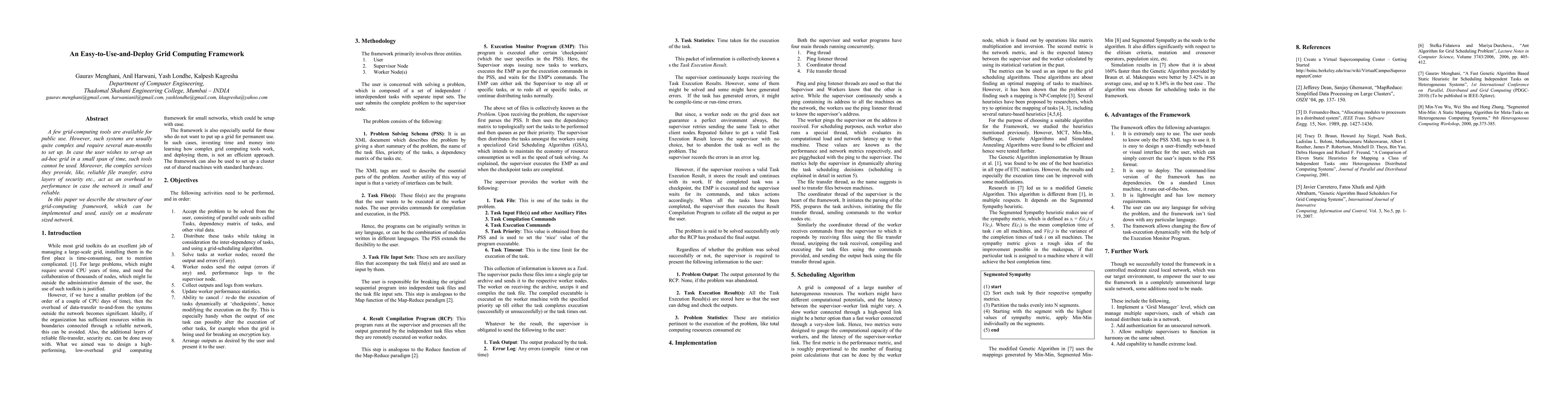 A new grid computing framework is proposed for easy setup and deployment on moderate-sized networks, addressing complexity and performance concerns of existing tools.