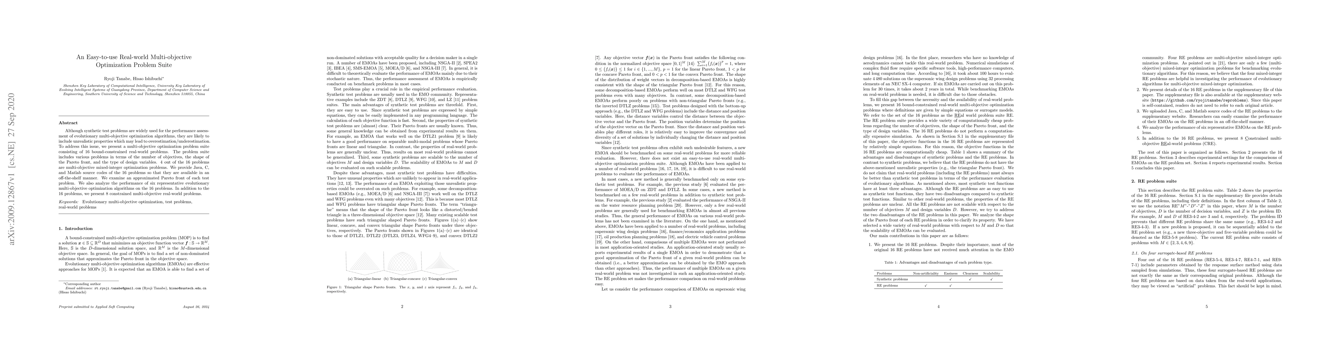 The paper presents a suite of 16 real-world multi-objective optimization problems with Java, C, and Matlab source codes, along with an analysis of six EMO algorithms on these problems.