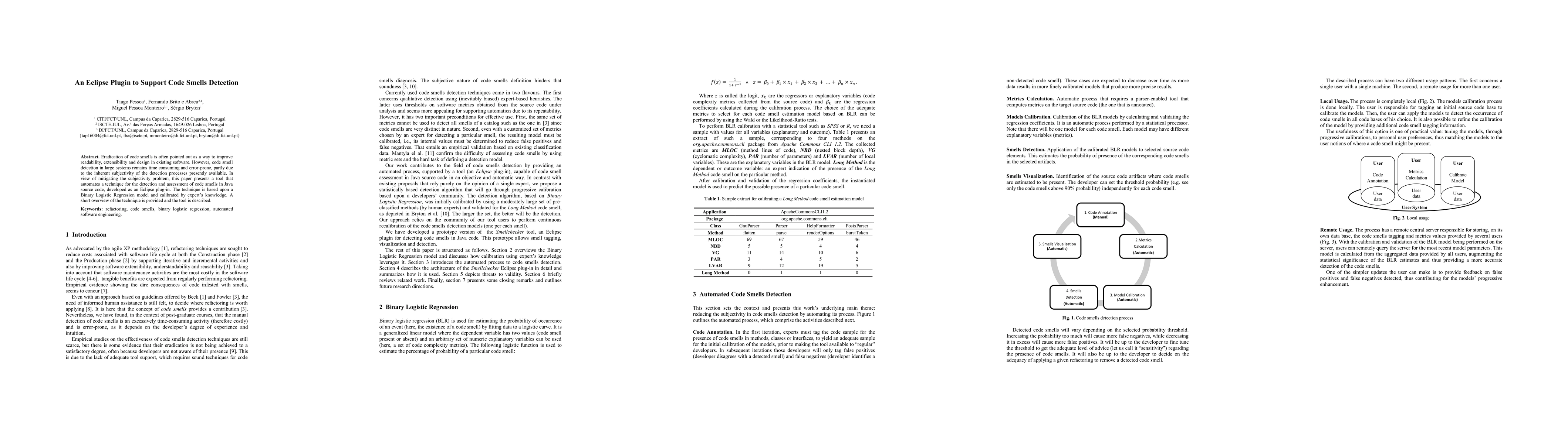 This paper introduces an Eclipse plugin that automates the detection and assessment of code smells in Java code using a Binary Logistic Regression model calibrated by expert knowledge, aiming to improve software readability and design by reducing subjectivity. A brief overview of the technique and the tool is provided.