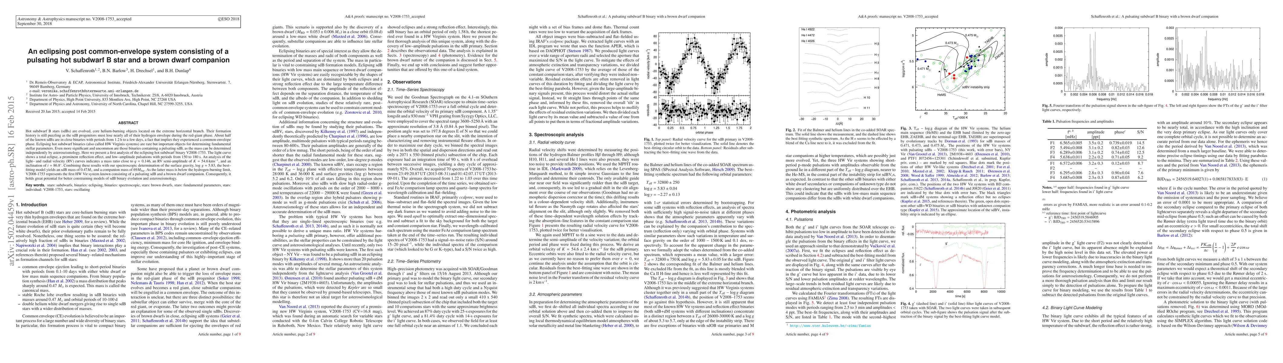 This paper presents the first analysis of the eclipsing binary V2008-1753, consisting of a pulsating hot subdwarf B star and a brown dwarf companion. The study reveals a unique system with a mass ratio of 0.146, providing valuable data for stellar evolution and asteroseismology models.