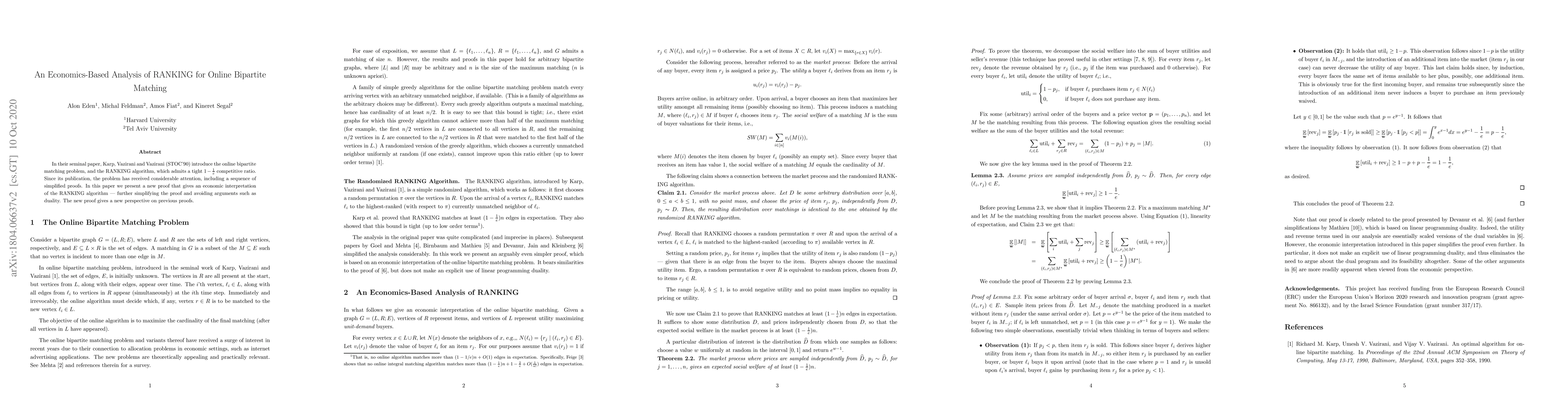 This paper provides a new economic interpretation of the RANKING algorithm for online bipartite matching, simplifying previous proofs with a fresh perspective.