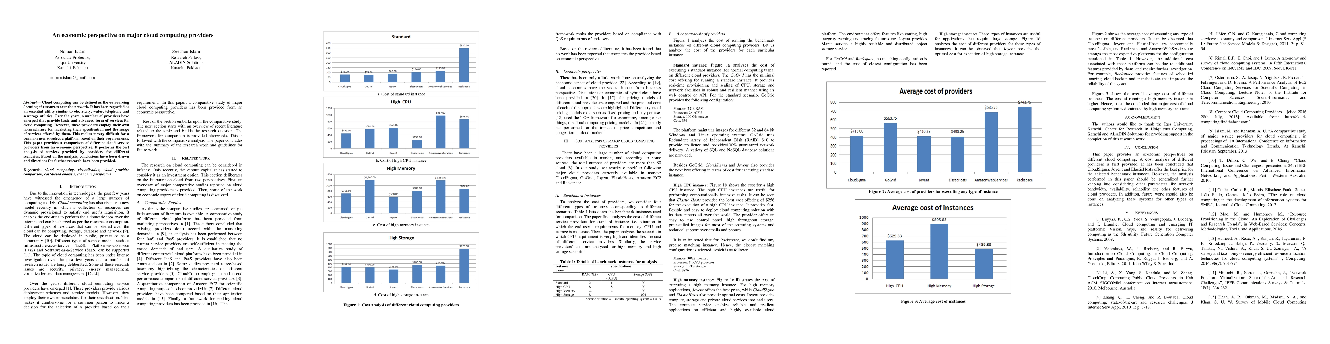 The research compares major cloud computing providers from an economic perspective, performing cost analysis for different scenarios using benchmark instances with varying requirements for memory, CPU, and storage.