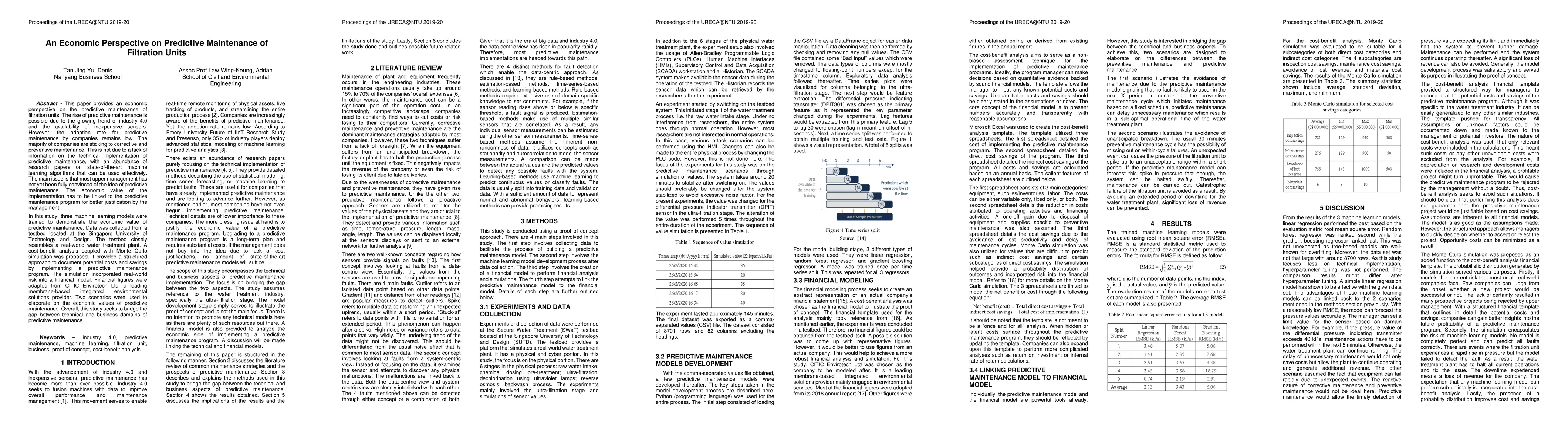 This paper investigates the economic benefits of predictive maintenance for filtration units, demonstrating its potential savings through machine learning models and cost-benefit analysis. It highlights the need for convincing upper management of its economic value to increase adoption rates.