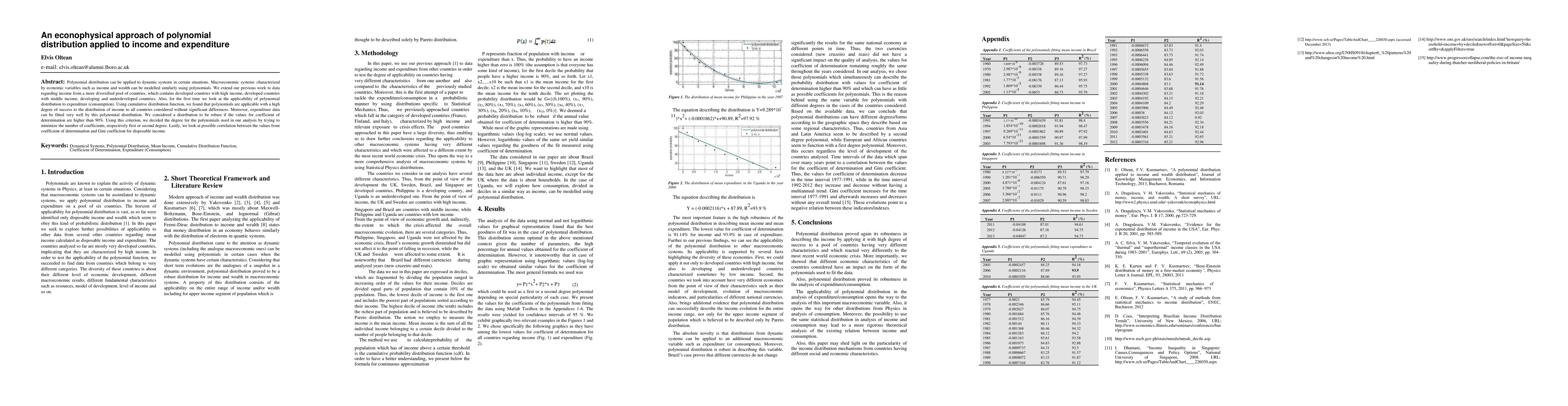 This paper applies polynomial distribution to model income and expenditure across various countries, demonstrating its robustness with a high coefficient of determination. It also explores the correlation between the fit of the polynomial model and the Gini coefficient for disposable income.
