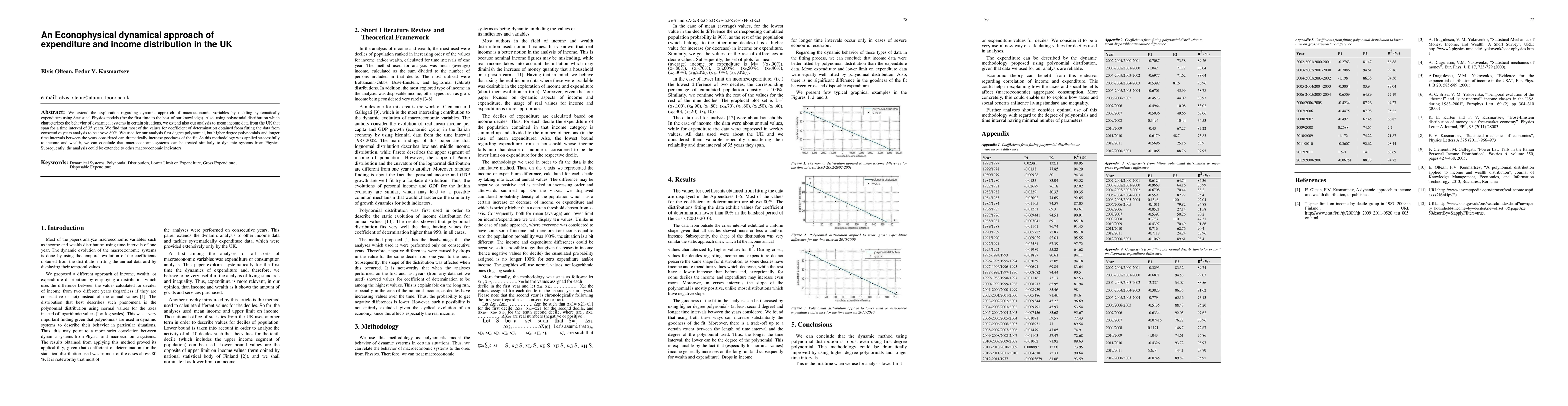 This paper applies econophysical models to analyze expenditure and income distribution in the UK, using statistical physics and polynomial distributions to characterize macroeconomic dynamics. The study finds high coefficient of determination values (above 80%) for fitting data over 35 years, suggesting that macroeconomic systems can be modeled similarly to dynamic systems in physics.