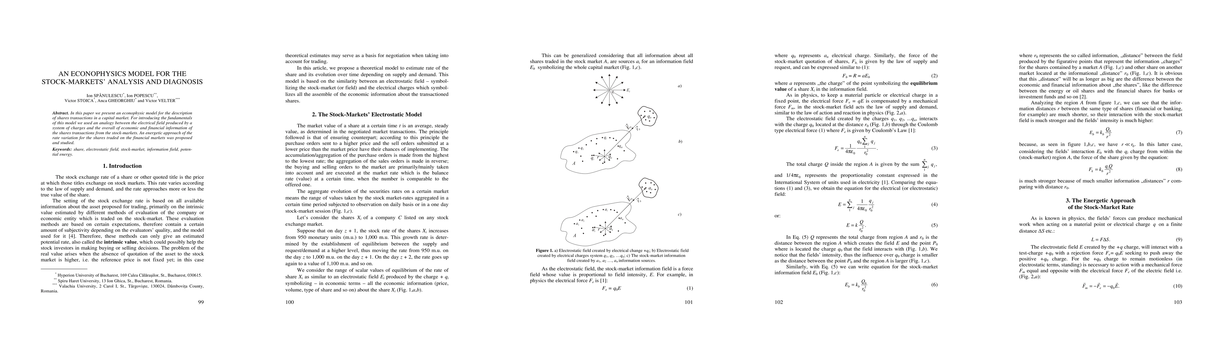 In this paper we present an econophysic model for the description of shares transactions in a capital market. For introducing the fundamentals of this model we used an analogy between the electrical field produced by a system of charges and the overall of economic and financial information of the shares transactions from the stock-markets. An energetic approach of the rate variation for the shares traded on the financial markets was proposed and studied.