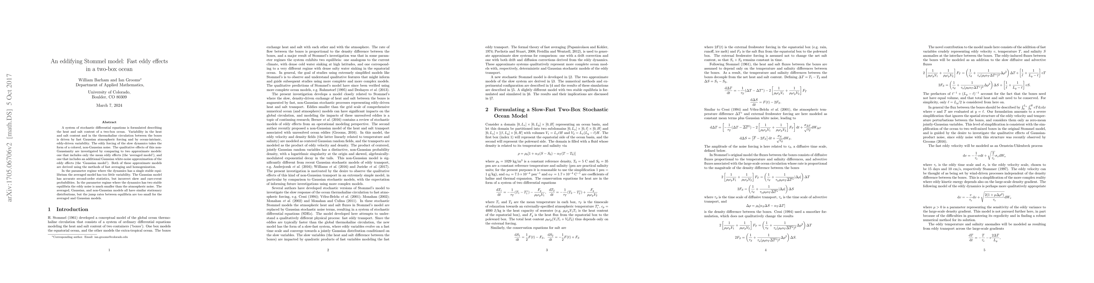 This paper investigates the effects of eddy-driven variability in a two-box ocean model using stochastic differential equations, comparing the impacts of non-Gaussian eddy noise against averaged and Gaussian models. It finds that the averaged model lacks variability, while the Gaussian model accurately captures second-order statistics but fails in skewness and rare events, highlighting the importance of non-Gaussian eddy effects.