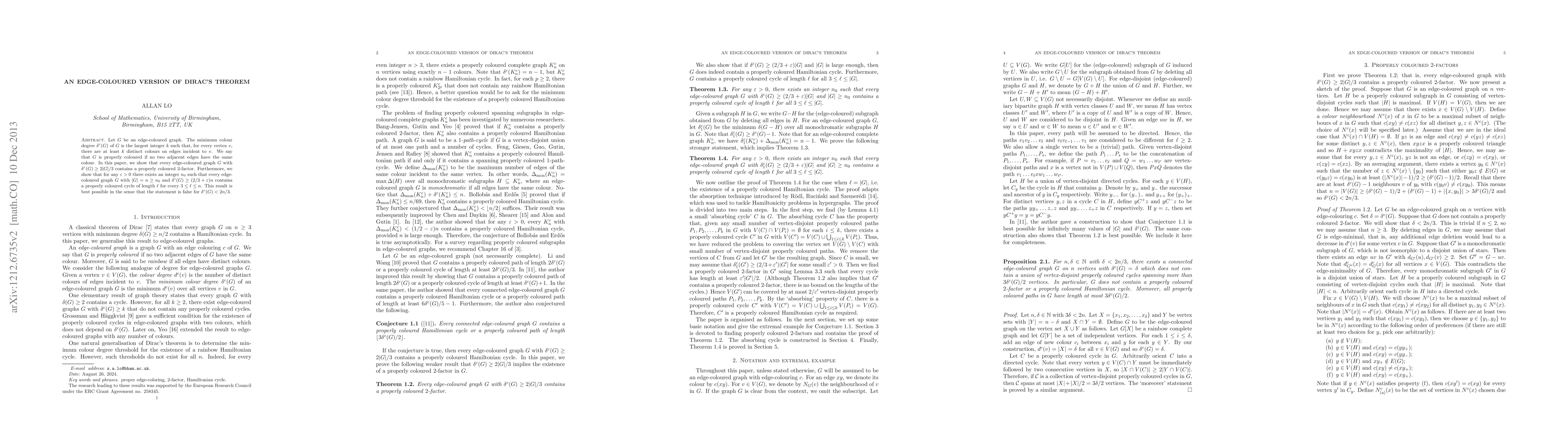 The paper proves that edge-coloured graphs with a minimum colour degree above 2/3 of their edges contain proper colourings, including cycles of increasing length as the graph size increases.