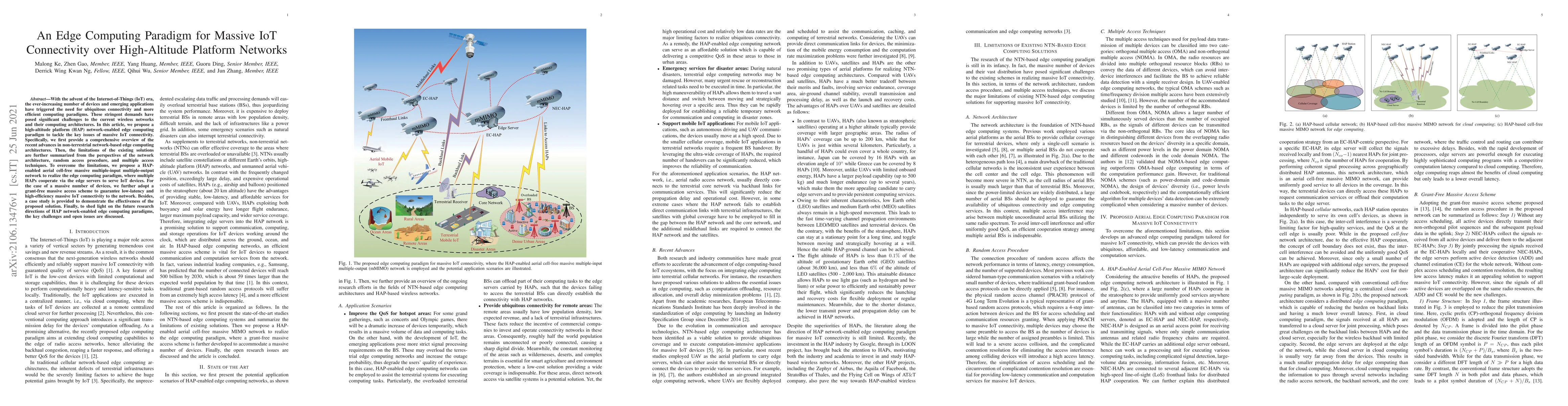 This paper proposes a high-altitude platform (HAP) network-enabled edge computing paradigm to address massive IoT connectivity challenges. It introduces a HAP-enabled aerial cell-free massive MIMO network with a grant-free massive access scheme for low-latency, high-efficiency connectivity, and discusses future research directions.